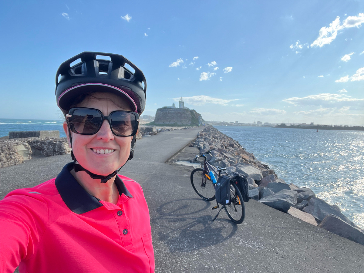 Lively ride along the Fernleigh track to get coffee at Belmont Airport and watch the Skydivers, Aerobatic plane, and helicopters land and take off.
